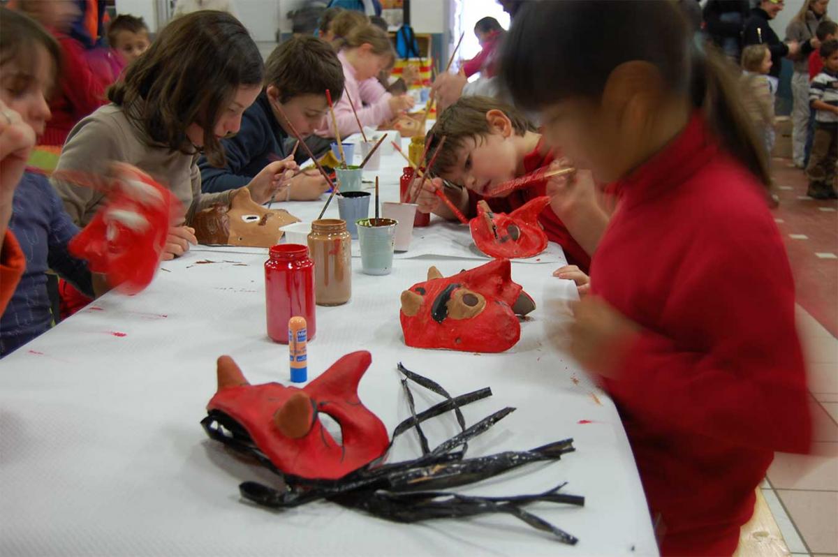 El taller Ventura Hosta, hem estat a França, concretament al poble de Les Angles, per porta a terma un taller de màscares de cartró per a nens i nenes, un cop a cabades vàren participar a la gran rua de carnestoltes.